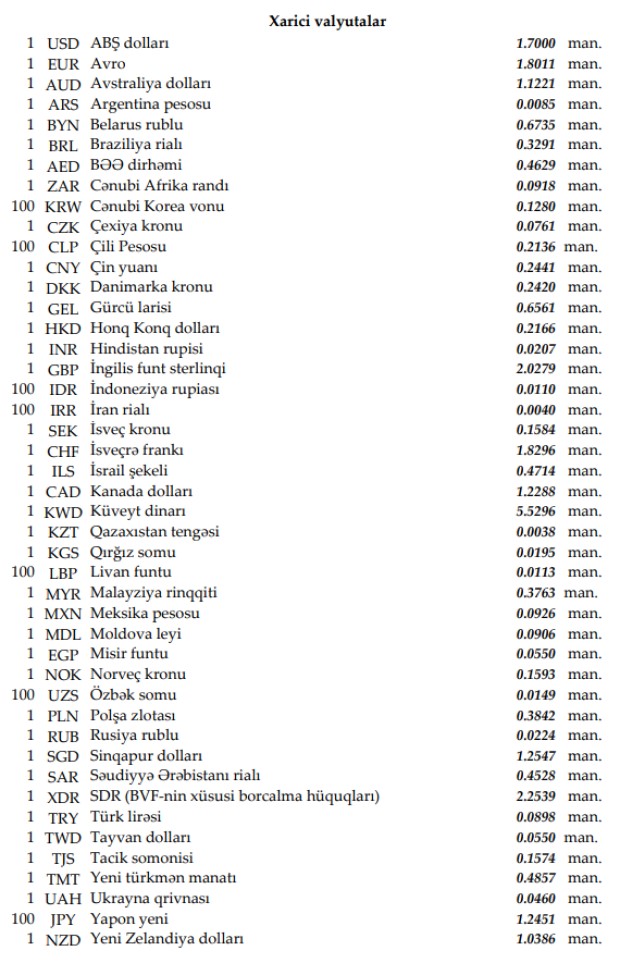 Azərbaycan Respublikasının Mərkəzi Bankı xarici valyutaların 10.03.2023 -cü il tarixindən etibarən Azərbaycan manatına qarşı RƏSMİ MƏZƏNNƏLƏRİ BÜLLETENİ