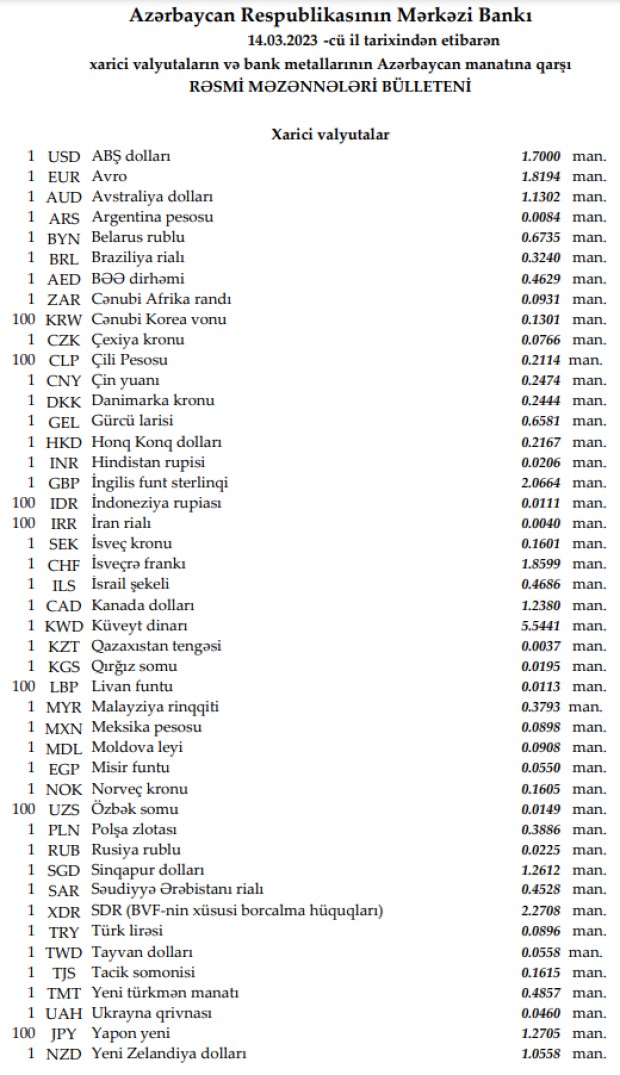 Dolların sabah üçün rəsmi məzənnəsi müəyyən olunub