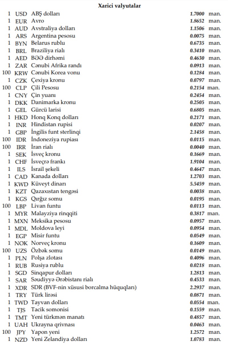 Azərbaycan Respublikasının Mərkəzi Bankının 10.05.2023 -cü il tarixindən etibarən xarici valyutaların və bank metallarının Azərbaycan manatına qarşı RƏSMİ MƏZƏNNƏLƏRİ BÜLLETENİ