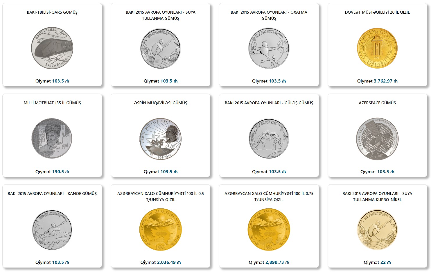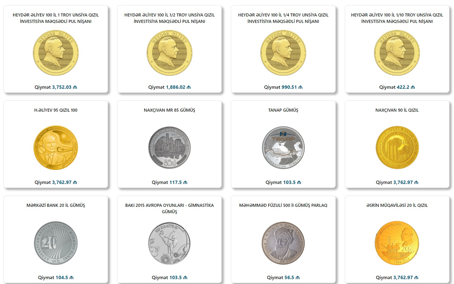 İnvestisiya məqsədli pul nişanlarının bu günə olan qiymətləri: