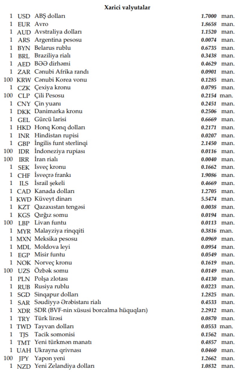 Azərbaycan Respublikasının Mərkəzi Bankının 11.05.2023 -cü il tarixindən etibarən xarici valyutaların və bank metallarının Azərbaycan manatına qarşı RƏSMİ MƏZƏNNƏLƏRİ BÜLLETENİ