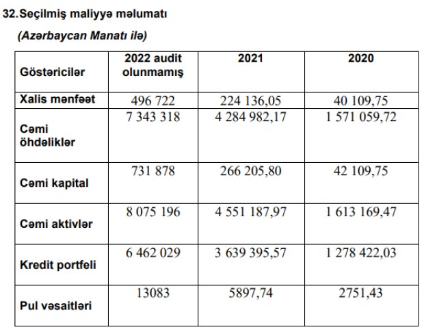 "Partner Finance" QSC 2022-ci ili 496 min 722 manat xalis mənfəət ilə başa vurub. Təşkilat 2020-ci ili 40 min 110 manat, 2021-ci ili 224 min 136 manat xalis mənfəət ilə bağlamışdı. Beləliklə, ötən il şirkətin xalis mənfəəti 2,2 dəfə artıb.