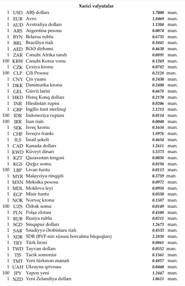 Azərbaycan Respublikasının Mərkəzi Bankının 17.05.2023 -cü il tarixindən etibarən xarici valyutaların və bank metallarının Azərbaycan manatına qarşı RƏSMİ MƏZƏNNƏLƏRİ BÜLLETENİ