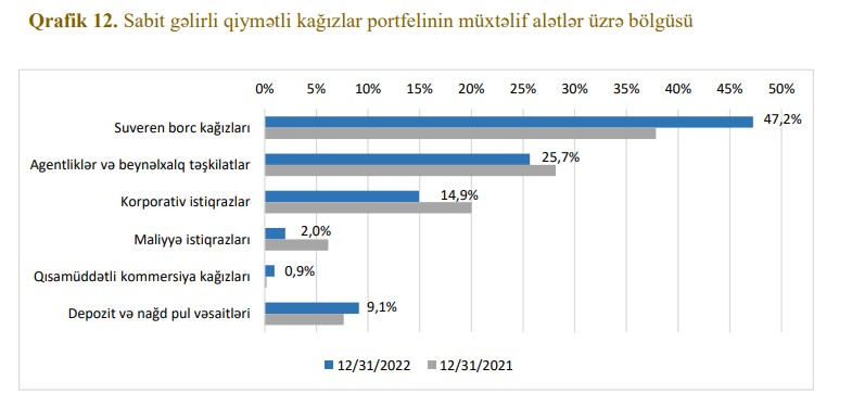 Uzunmüddətli istiqrazlara investisiyaların əksəriyyəti dövlət borc qiymətli kağızları vasitəsilə həyata keçirilmişdir ki, bu da sabit gəlirli qiymətli kağızlara investisiyaların 47%-ni təşkil etmiş və gəlirliliyi - (mənfi) 7,0% olmuşdur.