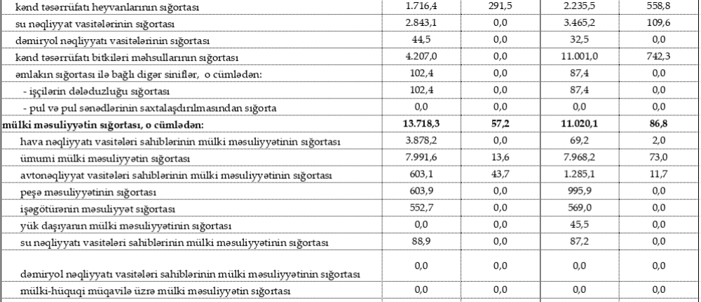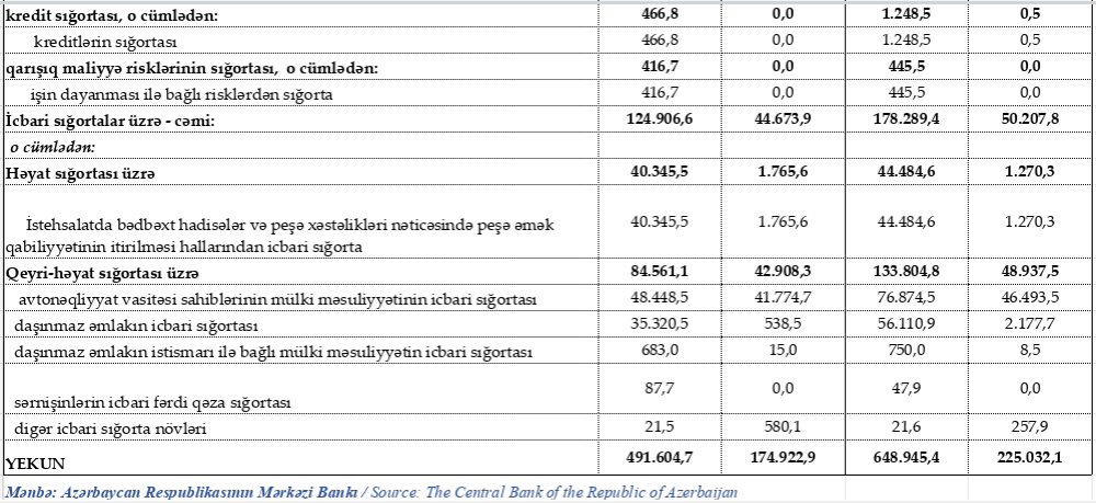 Azərbaycanın sığorta bazarı əsasən 3 sığorta növünün – həyatın yaşam sığortasının, avtonəqliyyat vasitəsi sahiblərinin mülki məsuliyyətinin icbari sığortasının və daşınmaz əmlakın icbari sığortasının hesabına böyüyüb.