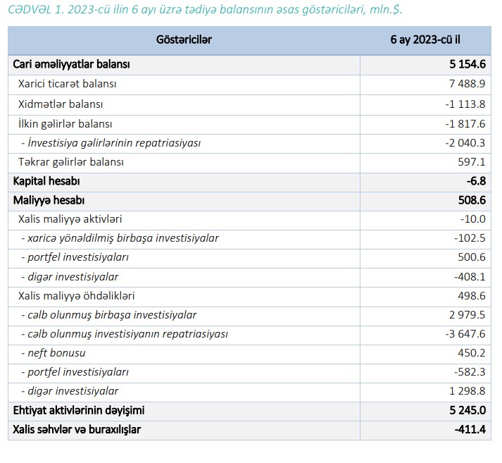 Marja.az xəbər verir ki, bu, Mərkəzi Bankın açıqladığı 2023-cü ilin 6 ayı üzrə Azərbaycan Respublikasının tədiyə balansıında bildirilir.
