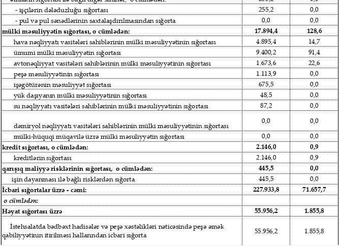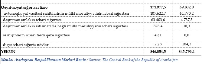 Hesabat dövründə sığorta şirkətlərinin həyata keçirdikləri ödənişlərin məbləği isə 345 milyon 796 milyon manat təşkil edib. Bu isə illik müqayisədə 21,9 % çoxdur.