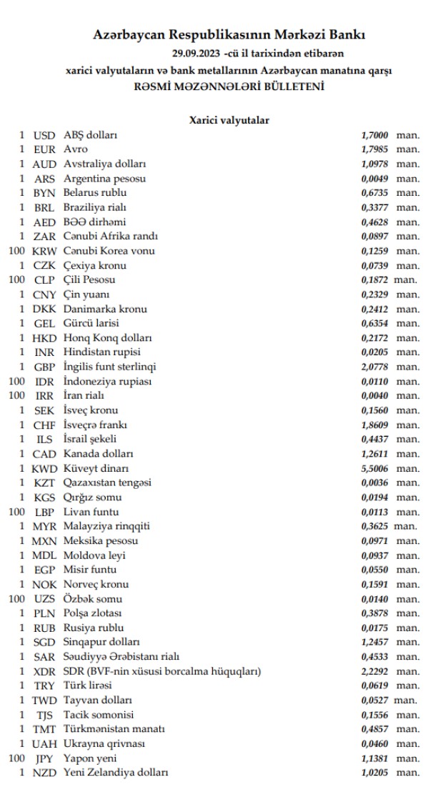 Dolların sabah üçün rəsmi məzənnəsi müəyyən olunub