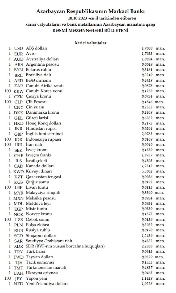 Dolların sabah üçün rəsmi məzənnəsi müəyyən olunub
