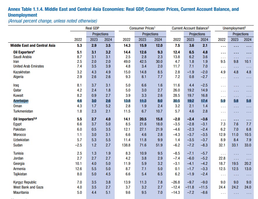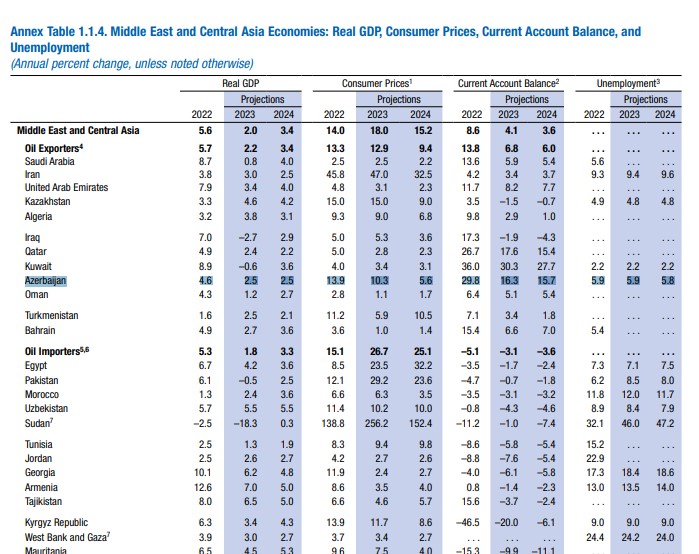 Marja.az-ın məlumatına görə, BVF Azərbaycanda 2023-cü ildə 10.3%, 2024-cü ildə 5.6% inflyasiya proqnozlaşdırır.