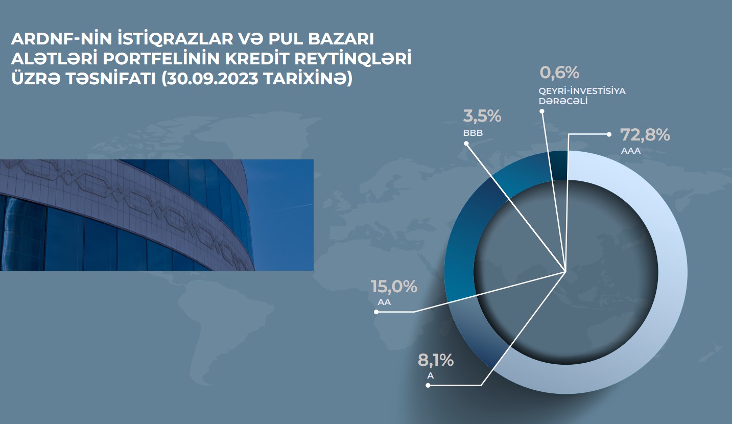 ARDNF-in vəsaitlərinin 96,4%-i yüksək reytinqli (А, АА və ААА) aktivlərdə yerləşdirilib.