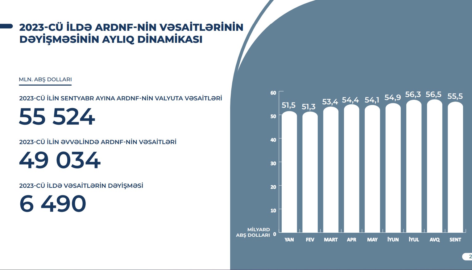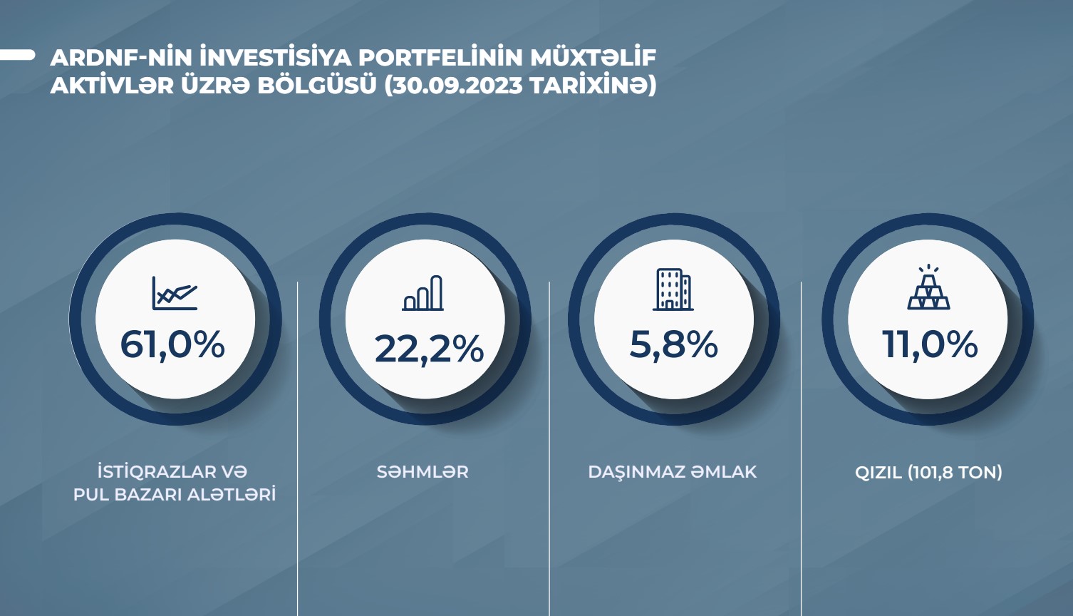 2023-cü il sentyabrın sonuna olan vəziyyətə görə, ARDNF-in investisiya portfeli 55 milyard 521,27 milyon dollara bərabərdir.