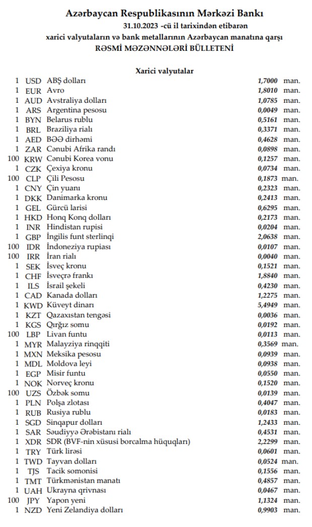 Dolların sabah üçün rəsmi məzənnəsi müəyyən olunub