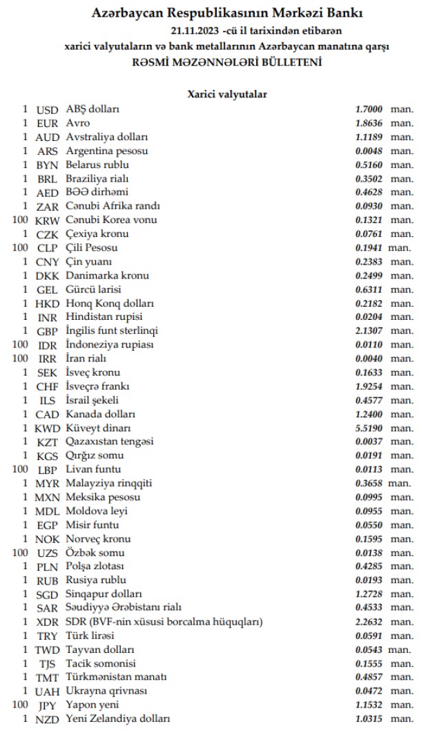 Dolların sabah üçün rəsmi məzənnəsi müəyyən olunub