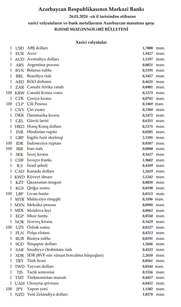 Dolların sabah üçün rəsmi məzənnəsi müəyyən olunub