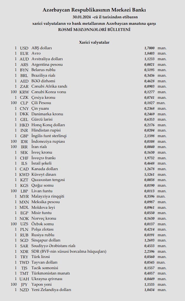 Dolların sabah üçün rəsmi məzənnəsi müəyyən olunub