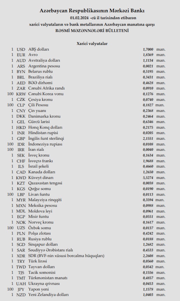 Dolların sabah üçün rəsmi məzənnəsi müəyyən olunub