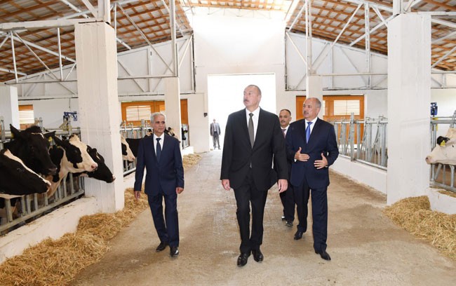 Sonra dövlətimizin başçısı “Günəşli-Aqro” MMC-in aqroparkı ilə yaxından tanış oldu. İlkin mərhələdə burada 500 başlıq südlük istiqamətli heyvandarlıq kompleksi üzrə 2 ferma binası və talvarlar, yardımçı binalar tikilib və sağım sistemi quraşdırılıb. Gələcəkdə aqroparkda 2500 baş ətlik istiqamətli heyvan saxlanılması nəzərdə tutulur. Bununla da kompleksin tutumu 3000 başa çatdırılacaq. Təsərrüfata ilkin mərhələdə “Aqrolizinq” Açıq Səhmdar Cəmiyyətinin xətti ilə 232 baş cins inək gətirilib. Bundan başqa, aqropark üçün kənd təsərrüfatı texnikaları, o cümlədən Türkiyədən hər birindən 2 ədəd olmaqla kombayn, qarğıdalıbiçən, silosdoğrayan, otbiçən, otbağlayan, gübrədaşıyan, otdoğrayan maşın, süd tankeri və taxılsəpən qoşqu alınıb. Bundan başqa, burada 40 ədəd elektron, 20 ədəd mexaniki sağım aparatı quraşdırılıb, “Belarus” markalı 3 traktor, 3 qoşqu və 3 kotan alınıb.