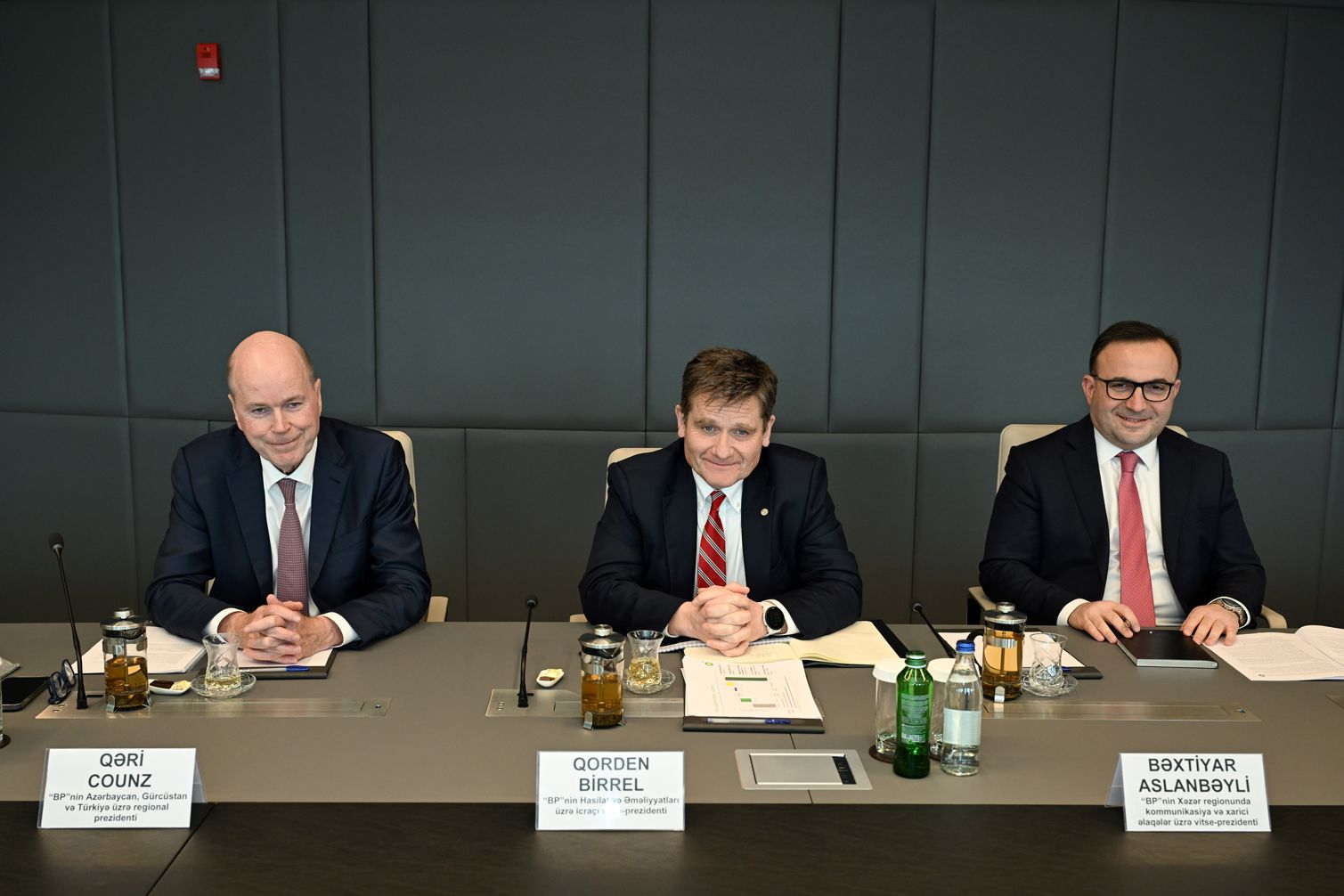 İqtisadiyyat naziri Mikayıl Cabbarov və SOCAR-ın prezidenti Rövşən Nəcəf bp şirkətinin hasilat və əməliyyatlar üzrə icraçı vitse-prezidenti Qordon Birrellə görüşüblər.