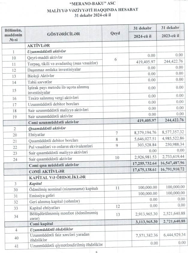 Marja.az xəbər verir ki, "Merano-Baku" şirkətinin satışan cəmi gəliri 2023-cü ildə 24 milyon 275 min manat ikən, 2024-cü ildə 30 milyon 225 min manat təşkil edib (5 milyon 950 min manat və ya 24,5% artıb).