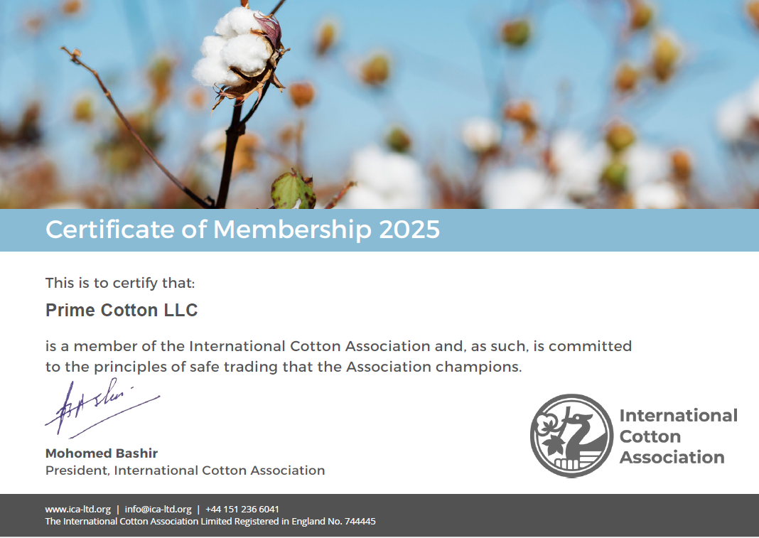 Prime Cotton-un beynəlxalq təşkilatlardan əldə etdiyi uğurlar bununla bitmir. Şirkət artıq Sedex- in Supplier Plus üzvü kimi qlobal təchizat zəncirində sosial, etik və ekoloji məsuliyyət prinsiplərinə əməl etdiyini rəsmi şəkildə təsdiqləyib. Eyni zamanda, Beynəlxalq Pambıq Assosiasiyası (ICA) üzvlüyü şirkətə beynəlxalq pambıq ticarətində etibarlılıq və şəffaflıq prinsiplərinə sadiqliyini nümayiş etdirmək imkanı verib.