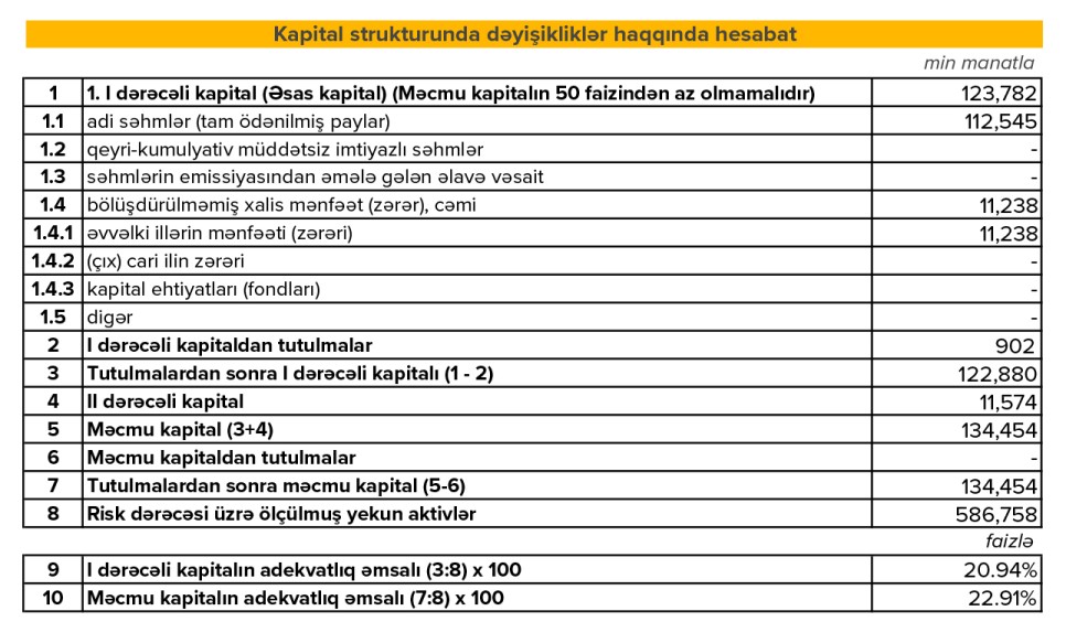 Aktivlər və kredit portfeli müsbət dinamika göstərsə də, hüquqi şəxslərin depozitlərinin azalması və xalis mənfəətin aşağı düşməsi bankın gələcək likvidlik və mənfəət imkanları üçün diqqət tələb edir. Ümumilikdə, bank əməliyyatlarını genişləndirsə də, mənfəət və kapital göstəricilərində tənzimləmə ehtiyacı var.