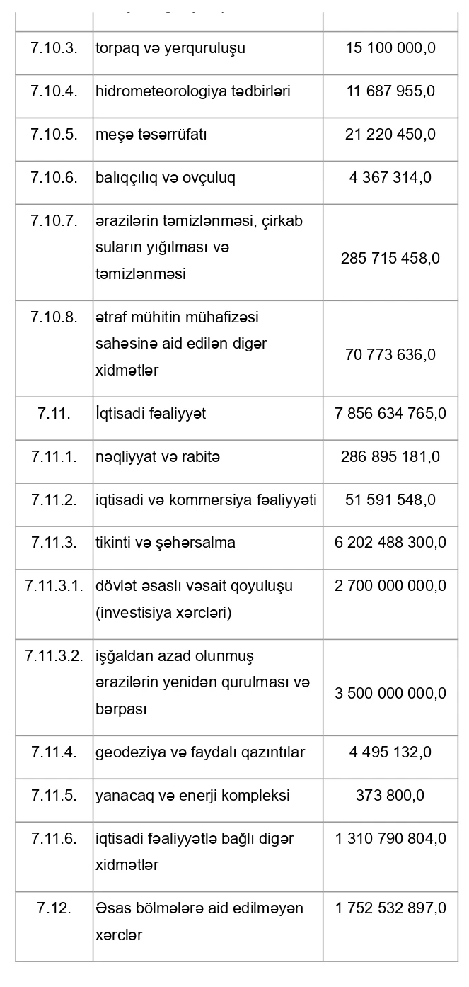 Azərbaycandan 42 milyard manatlıq büdcə - 3,1 milyard manatlıq kəsir nəzərdə tutulur
