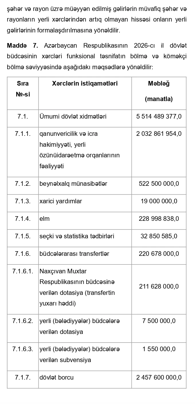 büdcə2026 2026büdcəsi 2026-cı il dövlət büdcəsi
