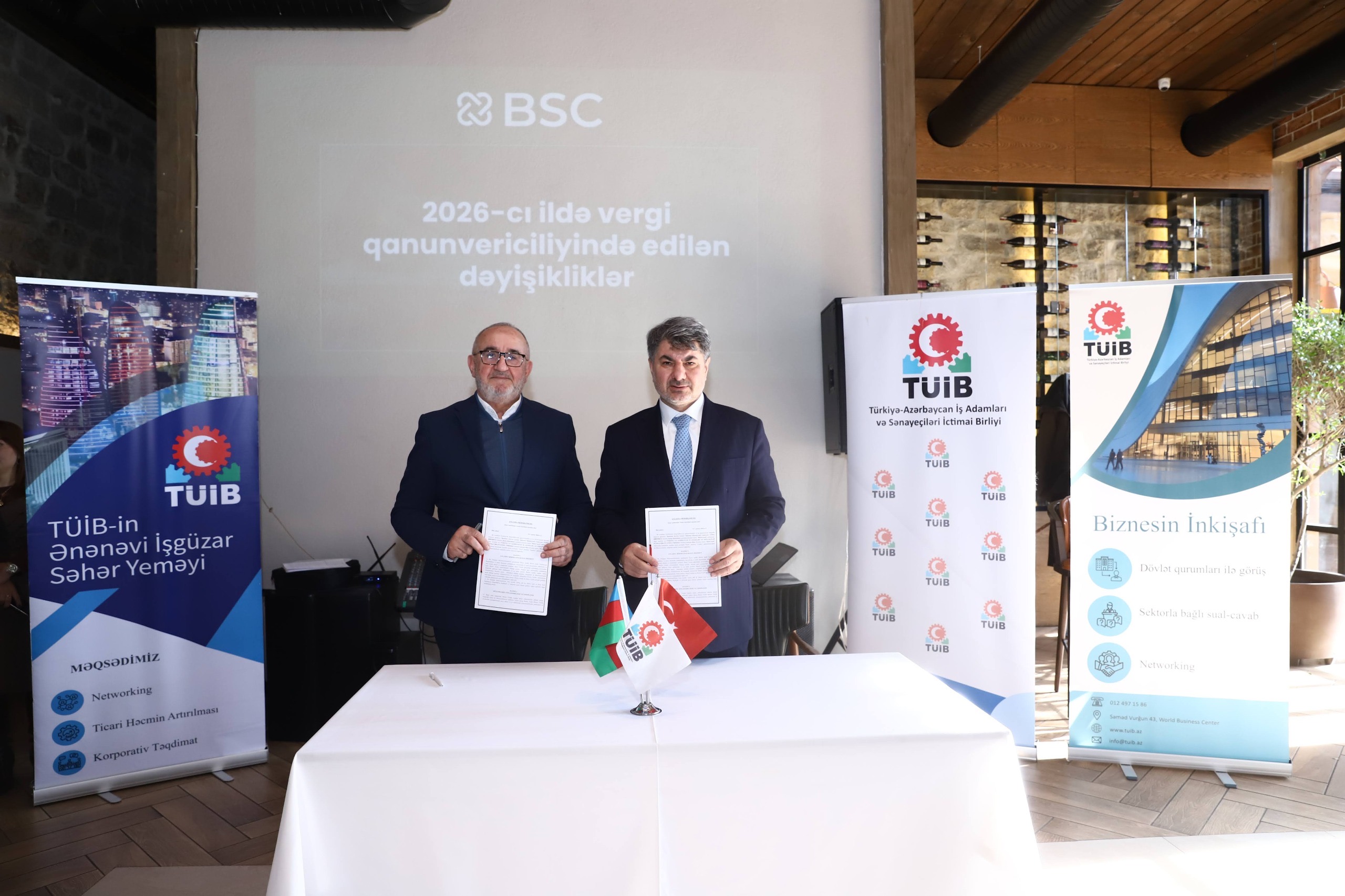İşgüzar səhər yeməyinin mühüm hissələrindən biri kimi TÜİB ilə qurumun üzvü olan Business Service Centre (BSC) arasında əməkdaşlıq memorandumu imzalanıb.