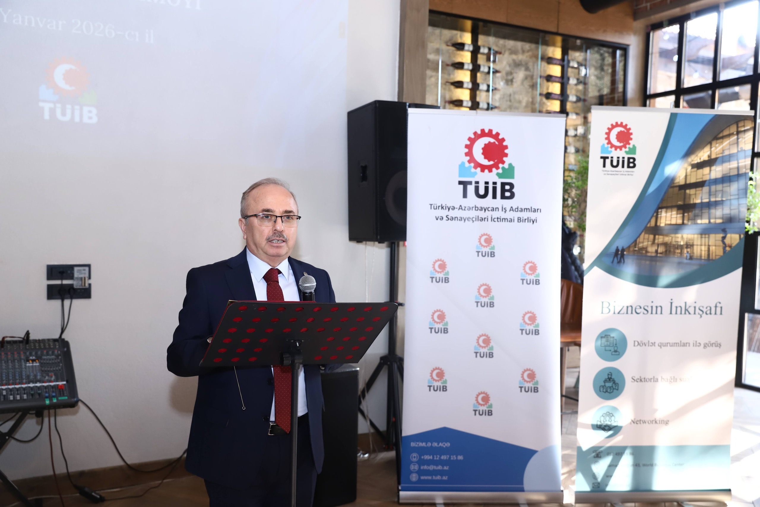 TÜİB-in İdarə Heyətinin sədri Hüseyin Büyükfırat çıxışında Türkiyə–Azərbaycan iqtisadi əlaqələrinin inkişaf perspektivlərinə toxunaraq, Birliyin iş adamları arasında əməkdaşlığın gücləndirilməsi, yeni biznes imkanlarının yaradılması və iki ölkə arasında iqtisadi inteqrasiyanın dərinləşdirilməsi istiqamətində fəaliyyətlərini davam etdirdiyini qeyd edib.