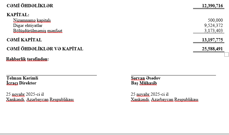 31 dekabr 2024-ccü il tarixində “Xankəndi şəhərində, Ağdərə və Xocalı rayonlarında Bərpa, Tikinti və İdarəetmə Xidməti” 25 milyon 588 min manat cəmi aktivlərə malik olub.