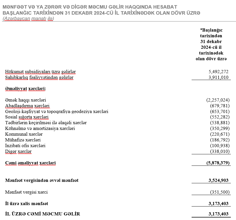 “Xankəndi şəhərində, Ağdərə və Xocalı rayonlarında Bərpa, Tikinti və İdarəetmə Xidməti”“Xankəndi şəhərində, Ağdərə və Xocalı rayonlarında Bərpa, Tikinti və İdarəetmə Xidməti” Publik Hüquqi Şəxs başlanğıc tarixindən (1 aprel 2024-cü il) 31 dekabr 2024-cü il tarixinədək olan dövr üzrə (9 ay ərzində) 3 milyon 173 min manat xalis mənfəət əldə edib.