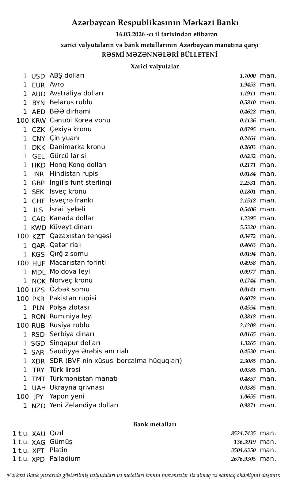 Dolların sabah üçün rəsmi məzənnəsi müəyyən olunub