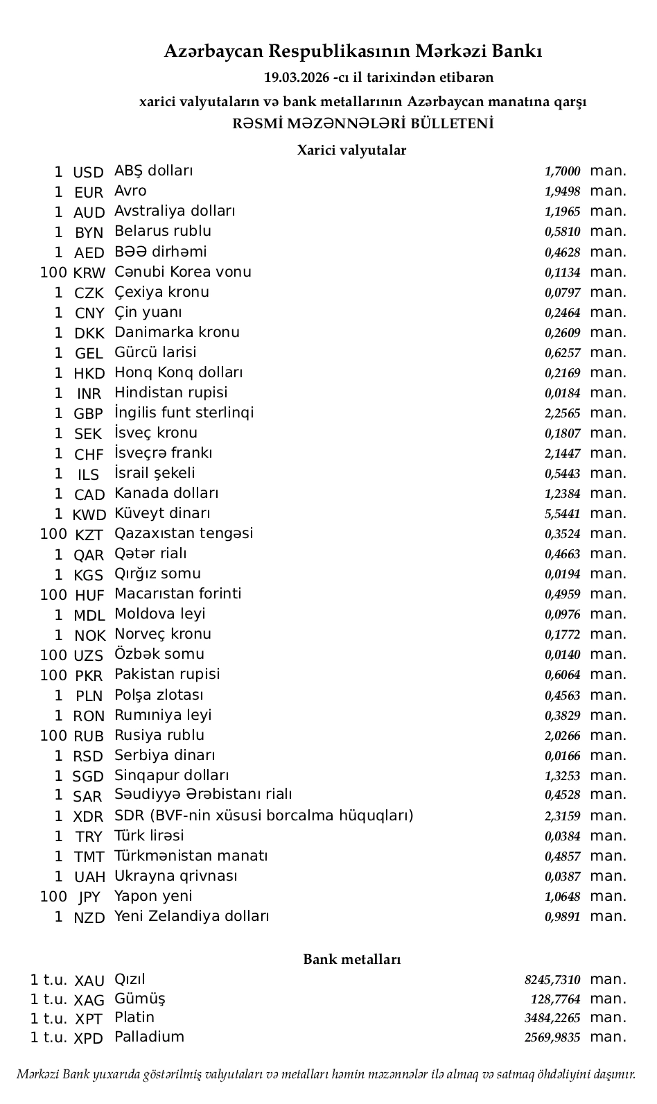 19.03.2026 tarixindən etibarən