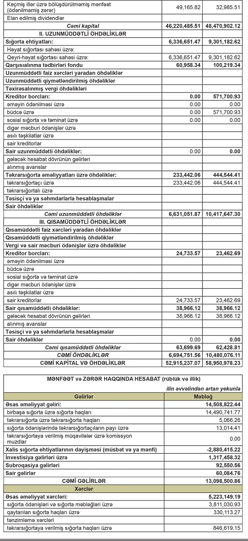 "Xalq Sığorta" 2016-cı ildə 5 milyon 333 min manat xalis mənfəət əldə etmişdi.