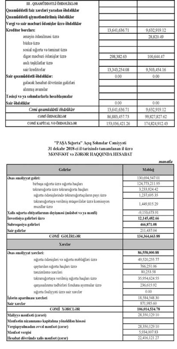“Marja” Şirkətin maliyyə hesabatlarına istinadən xəbər verir ki, 2018-ci ildə “PAŞA SIğorta”nın cəmi gəlirləri 134 milyon 364 min manat, cəmi xərcləri isə 106 milyon 14 min manat təşkil edib. Şirkət 28 milyon 350 min manat maliyyə mənfəətindən 5 milyon 934 min manat mənfəət vergisi ödəyib.