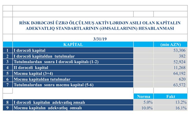 Müqayisə üçün qeyd edək ki, 2018-ci ilin yanvar-mart dövründə “TuranBank”ın cəmi gəlirləri 8 milyon 53 min manat, cəmi xərcləri 8 milyon 123 min manat, əməliyyat zərəri 70 min manat təşkil etmişdi. Bank aktivlər üzrə mümkün zərərlərin ödənilməsi üçün xüsusi ehtiyatın yaradılmasına 146 min manat da ayrıldığından zərər 216 min manata yüksəlmişdi.