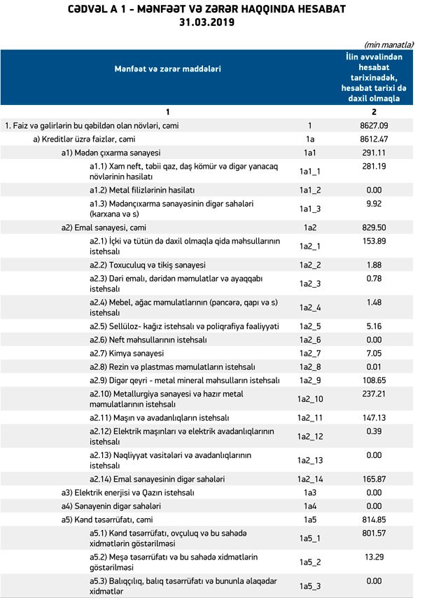 “AtaBank” ilk rübü xalis mənfəətlə bağlayıb