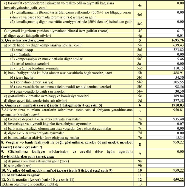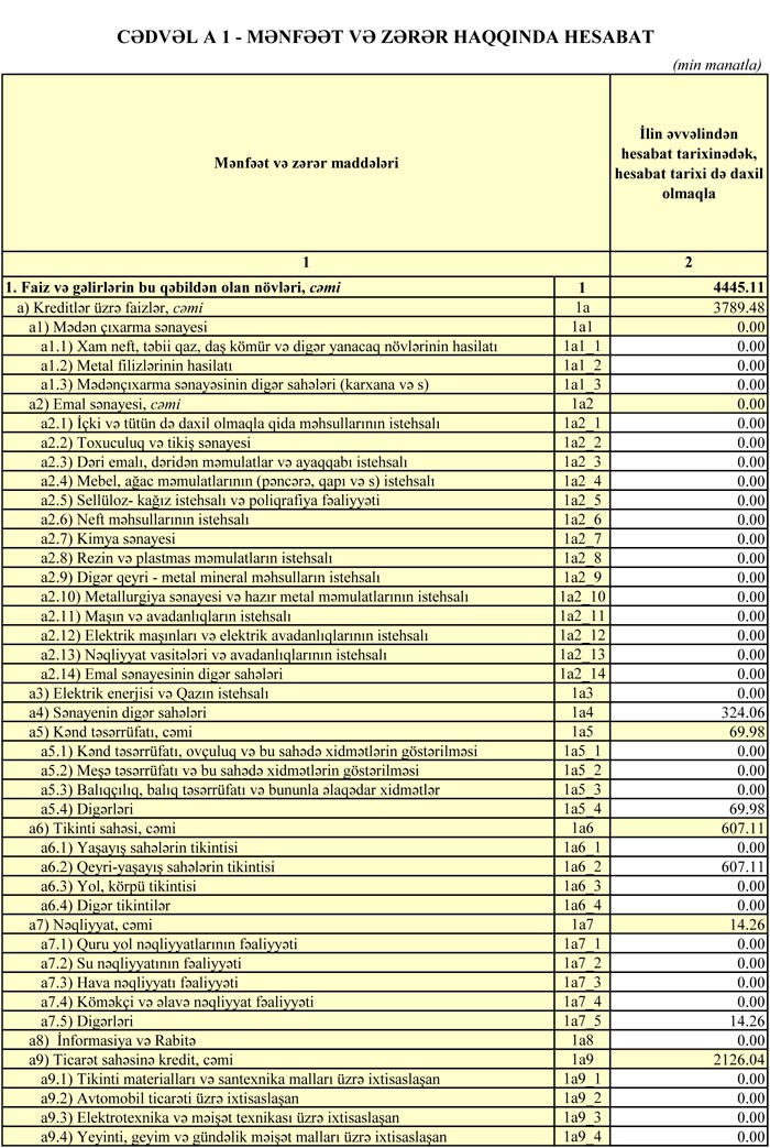 FAİZ GƏLİRLƏRİ ARTIB, QEYRİ-FAİZ GƏLİRLƏRİ AZALIB