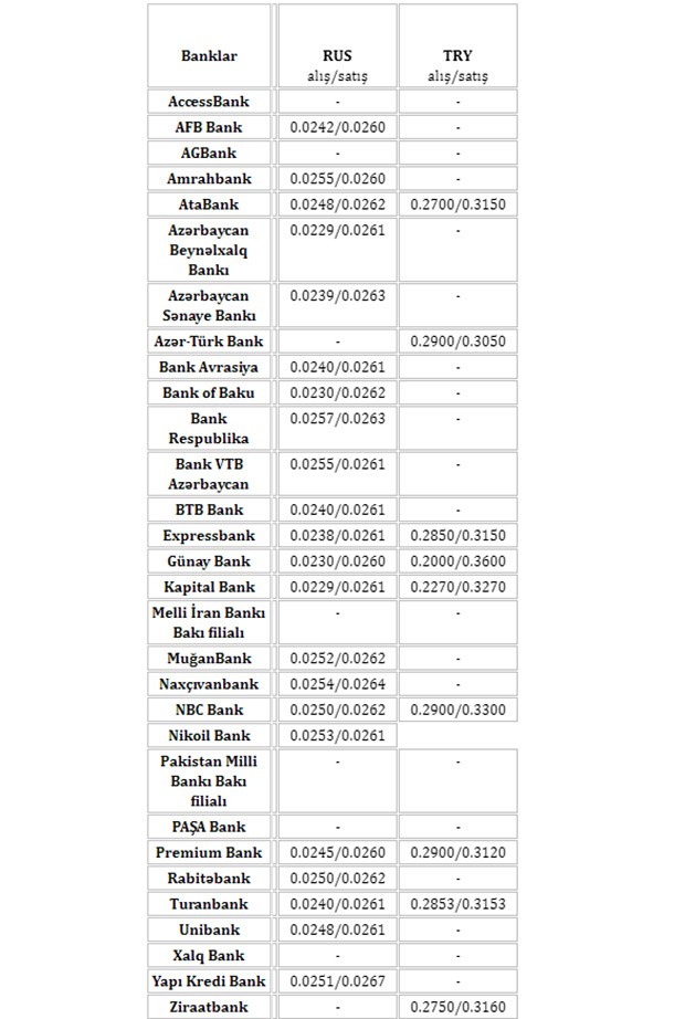 Azər-Türk Bank | 1.6990 | 1.7025 | 1.8500 | 1.8930 |