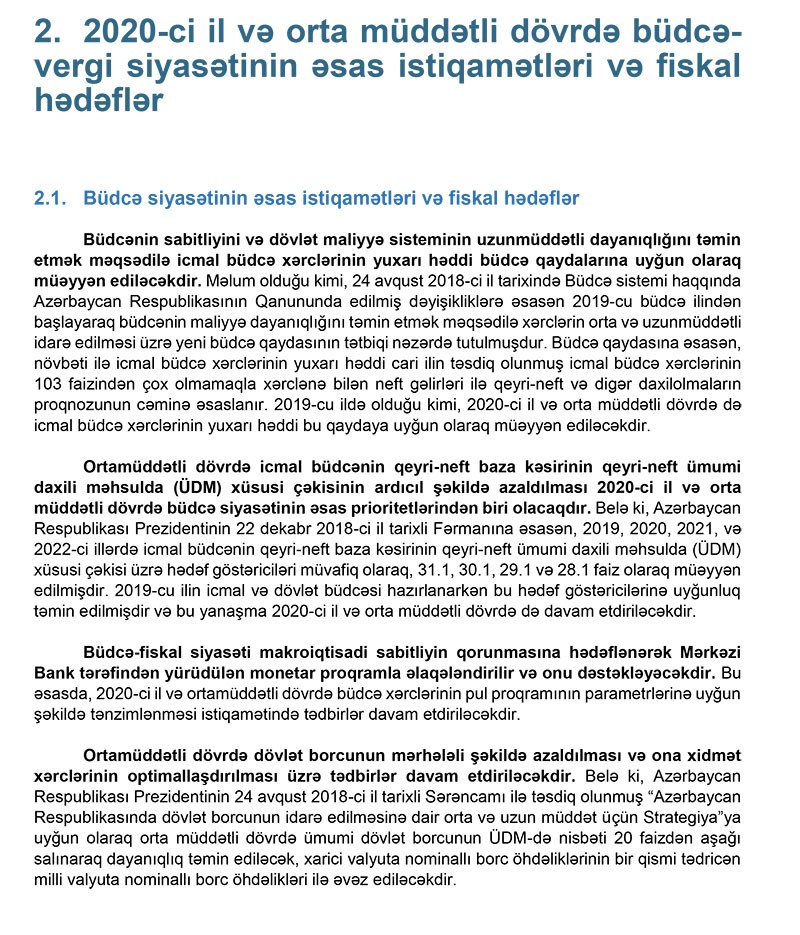 "Marja"nın məlumatına görə, Azərbaycan Respublikasının 2020-ci ilin dövlət və icmal büdcələrinin ilkin