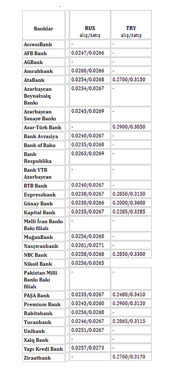 Ziraat Bank Azərbaycan | 1.6980 | 1.7025 | 1.8520 | 1.8930 |