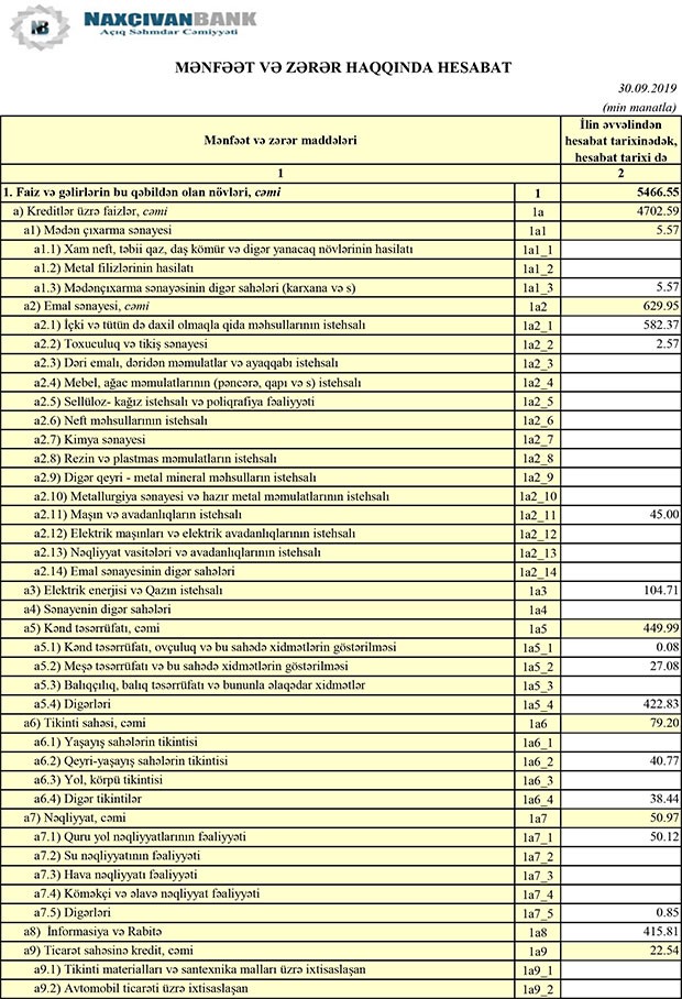 “Naxçıvanbank” ASC 2019-cu ilin 9 ayını 4 milyon 404 min manat xalis mənfəət ilə başa vurub. Müqayisə üçün qeyd edək ki, Bank 2018-ci ilin 9 ayını 4 milyon 431 min manat xalis mənfəət ilə bağlamışdı. Beləliklə, “Naxçıvanbank” ASC-nin xalis mənfəəti cüzi azalıb (27 min manat). Bankın biznes fəaliyyətinin nəticəsini daha dəqiq əks etdirən əməliyyat mənfəəti isə xərclərin artması ilə əlaqədar olaraq daha çox azalıb.