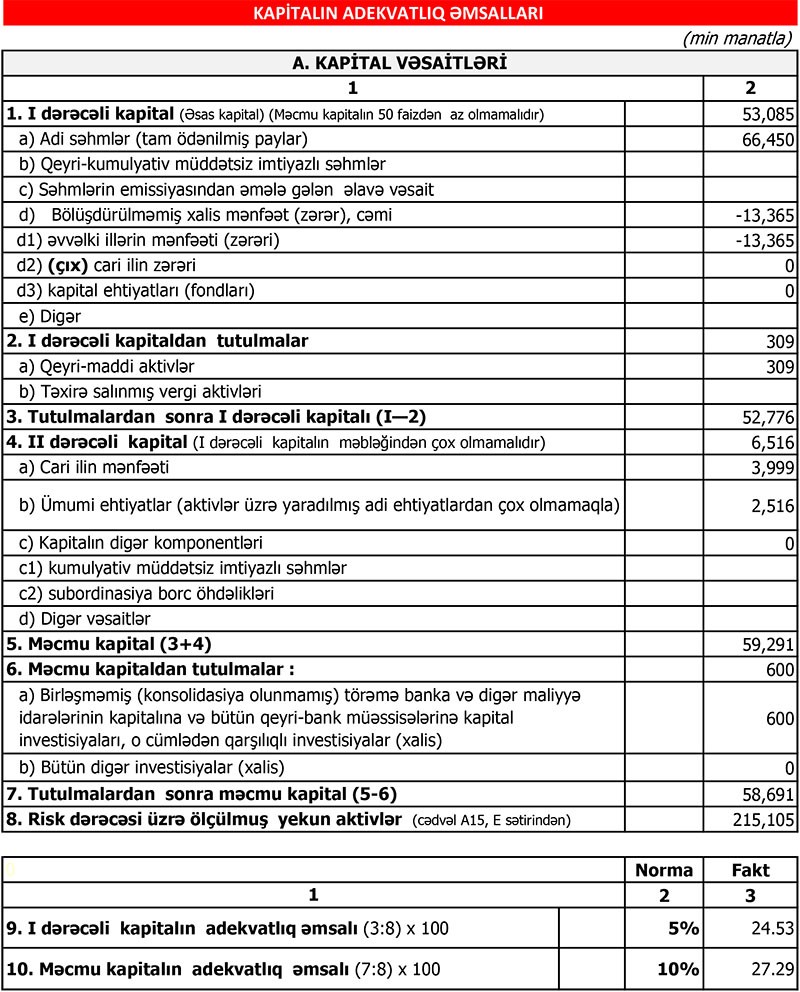 Qeyd olunan görstəricilərlə yanaşı Bankın açıqladığı maliyyə hesabatına əsasən ani likvidlik əmsalı 3-cü rüb ərzində 7% artaraq 53%-ə çatmışdır.