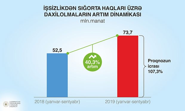 Bu şəraitdə sosial sığorta haqları üzrə daxilolmalar 20,6 faiz artıb, proqnoz 107,2 faiz icra edilib. Qeyri-büdcə təşkilatları üzrə daxilolmalar 21,9 faiz artıb, proqnoz 108,7 faiz icra edilib. İşsizlikdən sığorta haqları üzrə daxilolmalar 40,3 faiz artıb, proqnoz 107,3 faiz icra edilib. Qeyri-büdcə təşkilatları üzrə həmin daxilolmalar 44,8 faiz artıb, proqnoz isə 110,4 faiz icra edilib.