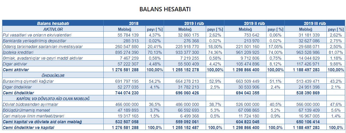 İKZF-in aktivlərinin 81,1%-ni və yaxud 963 milyon 529 min manatını ipoteka kreditləri təşkil edib. Son 1 ildə Fondun kredit portfeli 18,9% böyüyüb.