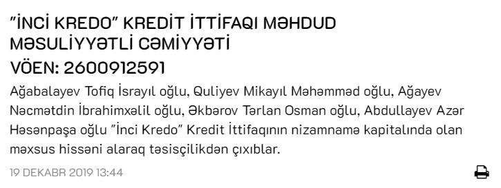 "Marja" xəbər verir ki, bu, "İnci Kredo" Kredit İttifaqı MMC-nin elanında deyilir.
