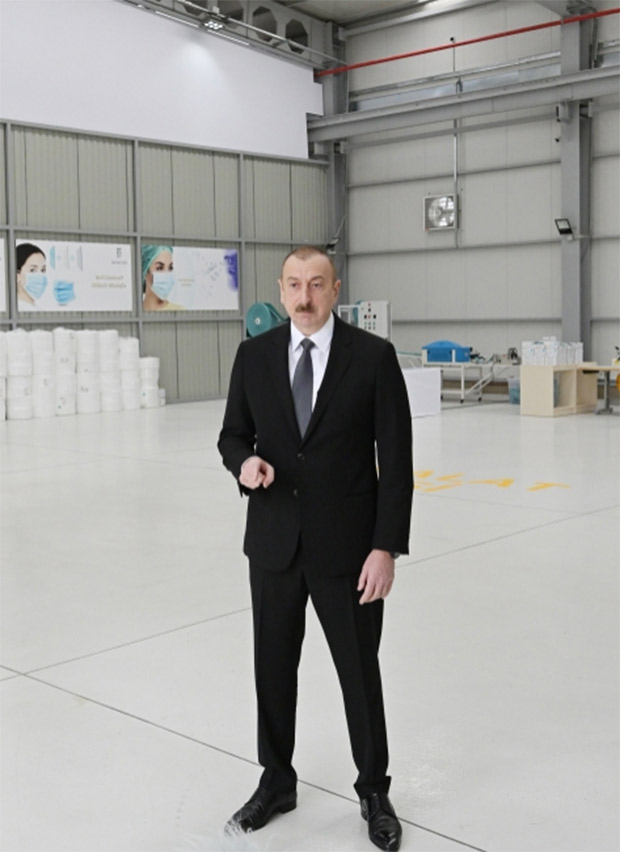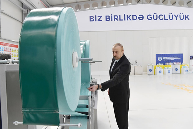 İlham Əliyev tibbi maska istehsalı müəssisəsinin açılışını etdi