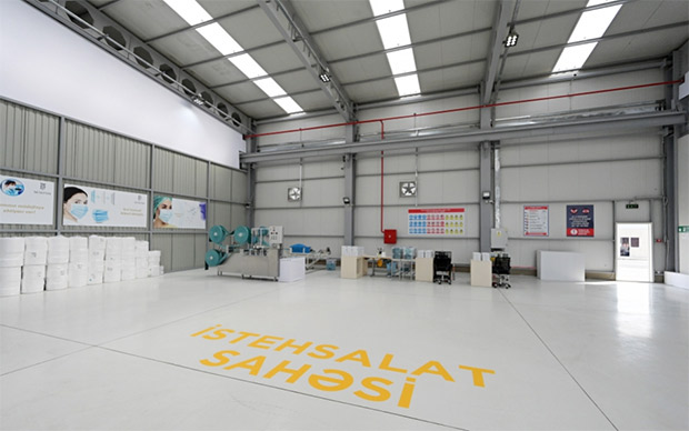 Məlumat verildi ki, “Bakı Tekstil Fabriki” MMC tərəfindən yaradılan tibbi maska istehsalı müəssisəsi Sumqayıt Kimya Sənaye Parkının ərazisində müvafiq yerlə təmin edilib və ona Sənaye Parkının rezidenti statusu verilib. Bu status müəssisəyə sənaye parklarına tətbiq edilən güzəştlərdən faydalanmağa imkan yaradır. İstehsalçıya İqtisadiyyat Nazirliyinin Sahibkarlığın İnkişafı Fondu vasitəsilə 1,2 milyon manat güzəştli kredit verilib. Müəssisənin yaradılması üçün investisiya xərcləri 3,9 milyon manat təşkil edir. Tibbi maskaların qablaşdırılması üçün xüsusi qutular da yerli istehsaldır. Onlar Balaxanı Sənaye Parkının rezidenti olan müəssisədə hazırlanır. Tibbi maska istehsalı üçün Türkiyədən gətirilmiş müasir avadanlıq qısa müddətdə quraşdırılıb. Müəssisədə 30-dan çox yeni iş yeri yaradılıb. İstehsal prosesi üçnövbəlidir. Müəssisədə İSO beynəlxalq standartlarına uyğun xammaldan istifadə olunmaqla birinci mərhələdə hər gün 120 min tibbi maska istehsal ediləcək. Maskalar qablaşdırıldıqdan sonra xüsusi avadanlıqla əlavə olaraq sterilləşdiriləcək. Yaxın günlərdə daha bir istehsal xətti qurulacaq və ikinci mərhələdə istehsal həcmi 2 dəfə artırılaraq gündəlik istehsal 200-250 min tibbi maskaya çatdırılacaq. Müəssisənin məhsulları ilkin olaraq, daxili bazarda tələbatı ödəməyə yönəldiləcək.