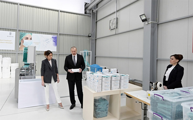 Azərbaycan Respublikasının Prezidenti İlham Əliyev və birinci xanım Mehriban Əliyeva aprelin 6-da Sumqayıt Kimya Sənaye Parkında “Bakı Tekstil Fabriki” MMC tərəfindən yaradılan tibbi maska istehsalı müəssisəsinin açılışında iştirak ediblər.